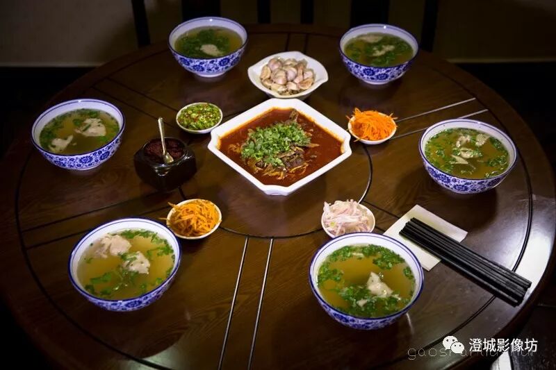 水盆羊肉,又叫羊肉汤,大碗汤,羊肉泡馍,起源于上世纪五、六十年代,是澄城县城最早烹制经营的水盆羊肉,主要以优质羊肉、羊骨加十余种辅料经多道工序烹制而成,食用时加以新鲜香菜,具有料重汤鲜,肉烂味醇,筷触骨离,香气四溢等特点,配以镇店菜---“羊肉墩子”“羊杂墩子”等和月牙烧饼、大蒜,脍炙人口,后味无穷,在渭北一带群众中久负盛名。澄城学斌水盆羊肉本着弘扬“澄城饮食文化打造澄城饮食名店”的理想和宗旨,深受澄城人民的厚爱和支持,及各地饮食名流的关注和喜爱,曾被渭南市2008年度授予“光彩之星”,澄城县大市场工商所2011年度授予“消费者满意单位”,2013年度曾被陕西电视台“七女秀陕西”栏目组进行过专访,陕西省烹饪秘书处授予“理事单位”和“个人会员”“单位会员”。在今年10月份学斌水盆羊肉代表澄城美食参加了秦东特色小吃争霸赛,和我县另外一个特色小吃壶山香麦子泡获得了“秦东小吃争霸赛”的状元称号。在他的精心探索和努力下,水盆羊肉经几十年的烹制改进发展,已成为澄城水盆羊肉的标志,成为澄城传统风味小吃的名片,成为澄城饮食行业的独特品牌,成为澄城饮食的一种文化。