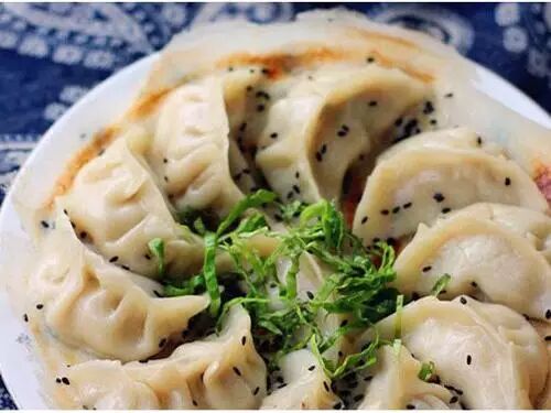 4.约6、7分钟后,可开盖看看,若饺子皮呈透明并鼓起状,表示熟透;若饺子熟透而水未干,就起大火收干水,同时撒入葱花,稍待片刻即可了。