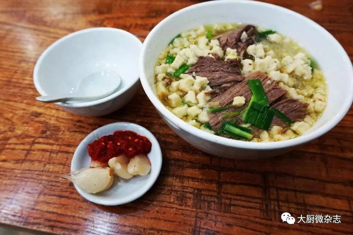 说到泡馍的几种吃法,也很有讲究。“干泡”也称“干拔”,是最考验煮馍师傅基本功的吃法,要求“碗中不见汤”,能插住筷子。微信搜索并关注大厨微杂志馍粒的大小与煮法是相对应的,“干泡”、“口汤”、“水围城”分别对应“黄豆”、“花生”、“蚕豆”三种尺寸,顾客若想吃“干泡”,需先将馍掰成黄豆大小,然后在碗中放一根筷子,师傅一看便知客人的要求了。