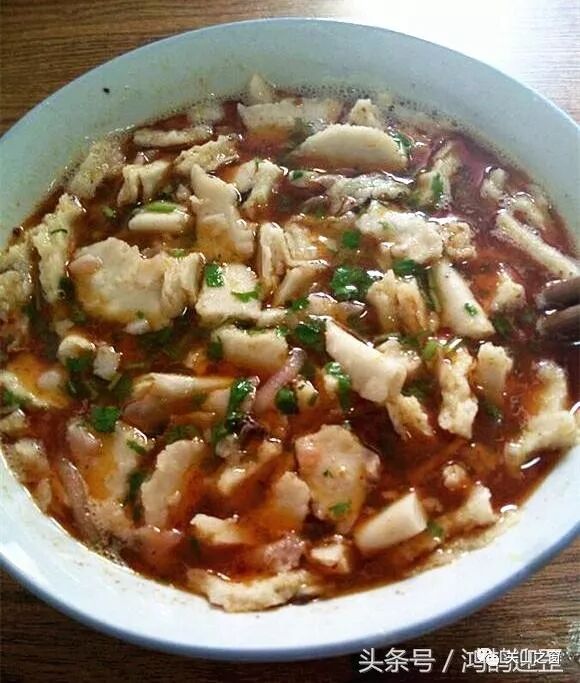 陕西各地差不多都有羊肉泡馍,陇县也不例外,陇县羊肉泡馍跟西安的羊肉泡馍不太相同,用得馍是白面烤饼,一张烙好的大饼,被几刀切成扇子形,码在案台上,顾客点餐后,服务员都会问:要几片馍?大多情况下,顾客都吃两片,食量大的才会要上三片以上。吃完后,对身体是极好的滋补和温暖。