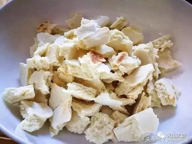 用来煮羊肉泡馍的熟馍,被切成了扇子形。