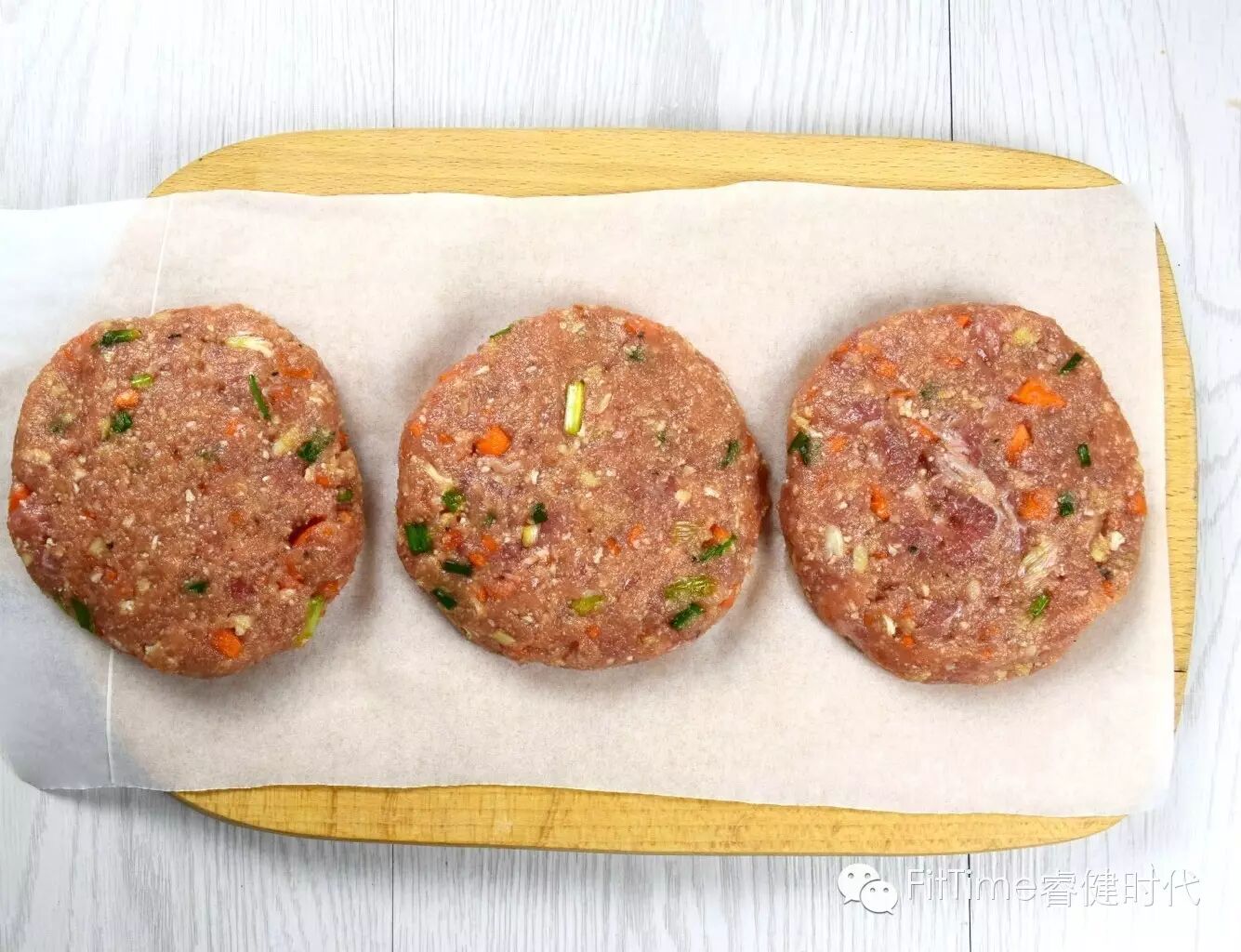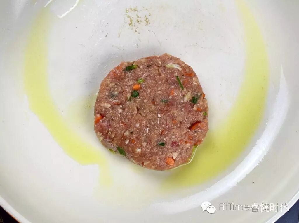 6.用手将牛肉泥揉成饼状,放在一旁,这时可以拿出你的平底锅了;![]()