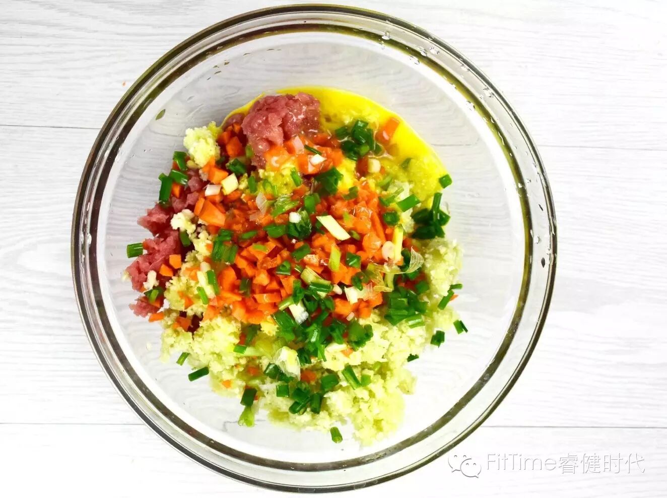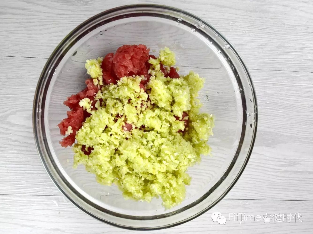 1.牛肉绞成泥,西兰花去根茎绞成泥,胡萝卜(这里只用了半根)切丁;