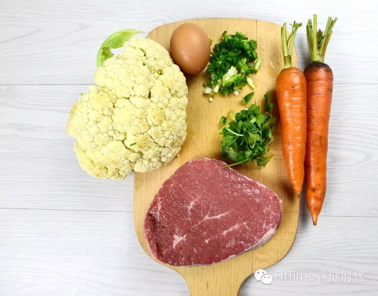 主食材:牛肉240g,西兰花320g,鸡蛋1个,胡萝卜,香菜,小葱。
