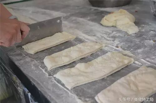 把发好的面团分割成小片,每一片就是一个锅盔。
