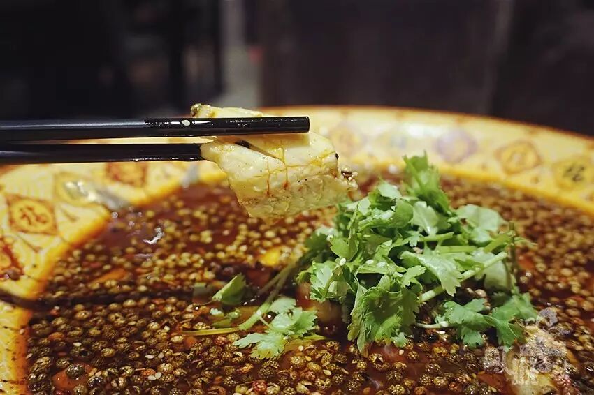 上桌鲜艳浓烈的一盆,表面布满绿色的藤椒,闻着蹿香,还没开吃就觉着嘴唇发麻了。香菜和辣椒浮在油面上,厚切片的嫩鱼肉已经让凤五君欲罢不能了,色和香是全了,这味道还会错吗?