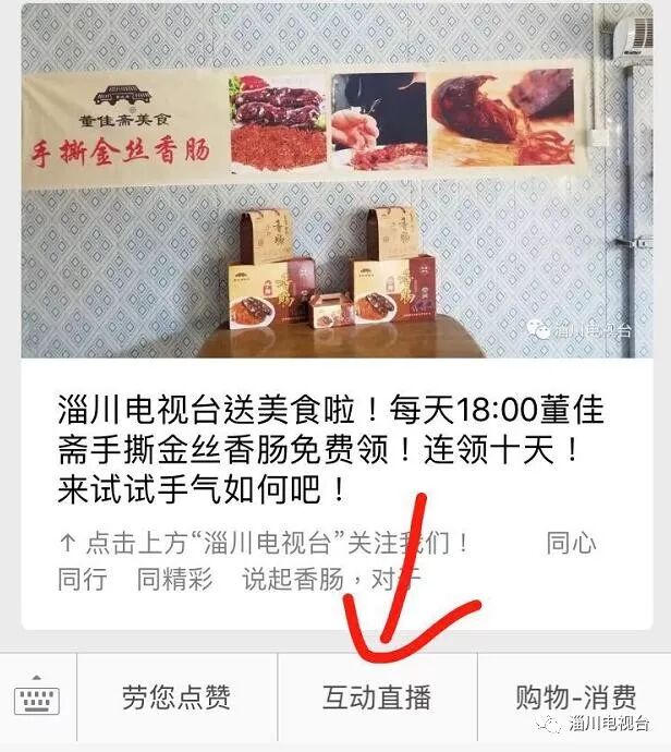 关注后,进入淄川电视台微信公众平台主页面,按照下图提示点击互动直播。