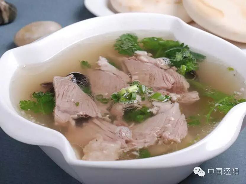 用型好的沸汤将碗里的肉“冒”三遍,再给汤里加入泼好的调料水、香菜沫、葱沫等。此时,一碗热气蒸腾,香气扑鼻的泾阳水盆羊肉便大功告成。 泾阳受惠于郑国渠的浇灌,自古就土地肥美,物阜民丰。经过数千年的陶冶,泾阳饮食不但形成了自己的谱系,而且诞生了自己独特的饮食文化,讲究色、香、味、形,真正做到了食不厌精。泾阳水盆羊肉之所以久负盛名,对馍的制作要求也至关重要。