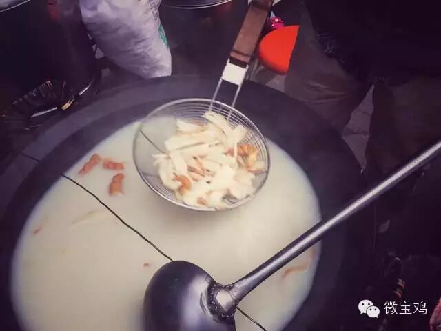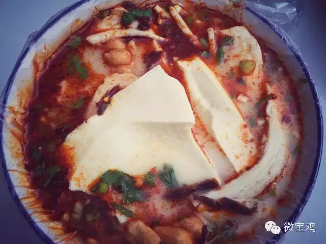 宝鸡地处陕西关中西部,俗称西府,那里一个著名小吃有着这样的形容“豆浆携麻花和锅盔片等彩礼迎娶了带着葱花、香菜、油泼辣子等嫁妆的豆腐脑,他(她)们结婚了,生了个孩子叫豆花泡馍,这孩子一举成为西府地区名小吃。”