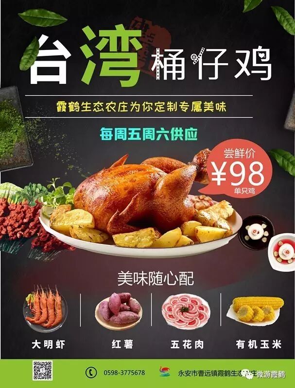 即日起,每周五周六供应台湾桶仔鷄,美味现烤,随心搭配,尝鲜价单只鸡只要98元(配菜需单点,请提前一天预定)