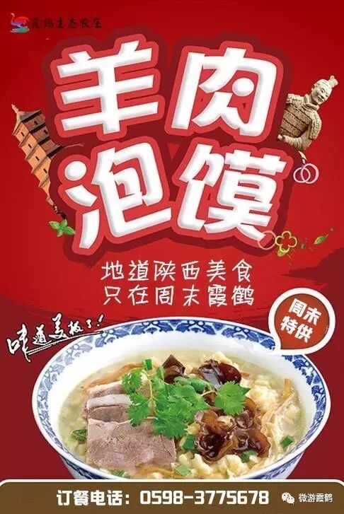 即日起,霞鹤生态农庄每周末供应正宗西安羊肉泡馍,特邀请专业师傅,为您烹饪地道的美味。