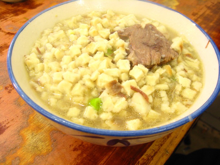 而真正的老店,是要求食客手工掰制的,掰的不好,掌大勺的绝对不会给你上锅去煮——因为你压根就不具备一个吃泡馍人的基本资格。真正的食客往往是不在乎掰馍的时间的,但就可怜了那些急于品尝美食的兄弟们了,掰馍的痛苦过程无异于平日消化系统正常突然一日感到严重便秘一样的令人浑身不爽。
