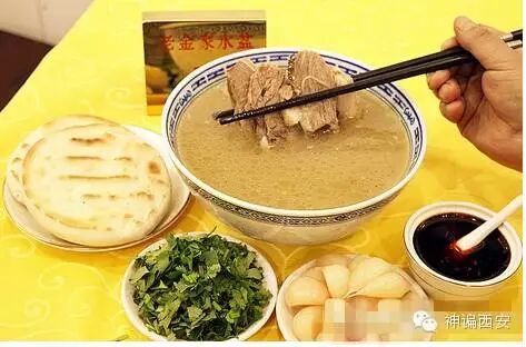陕西人食用水盆羊肉时,多配用白吉馍或锅盔同吃,佐以鲜大蒜、辣酱或糖蒜,可以把馍泡入汤中一碗连吃带喝,也可以吃一口馍喝口汤,陕西澄城县的水盆羊肉是用一种月牙饼搭配吃的,把肥瘦相间的羊肉片夹在刚打出来的月牙饼中,加些新鲜青椒丁,就着羊肉汤。水盆羊肉吃起来特别豪迈,师傅伙计穿梭在大锅和大桌之间,食客埋头于大碗中和大馍之中,凸显出浓郁的西北风。西安有名的水盆羊肉:老金家水盆羊肉位于西安市北院门内 凤翔改改豆花泡馍 位于玉祥门内西北一路的这家店象中这家至少已经开了小十年,早饭的时候周围的不少居民都会来这儿吃早餐,看起来市井气息十足。小店开在路边,谈不上环境和服务,做的就是一口好味道。老板也挺实诚,豆花泡馍豆浆不够可以免费加,咸菜也随便吃。