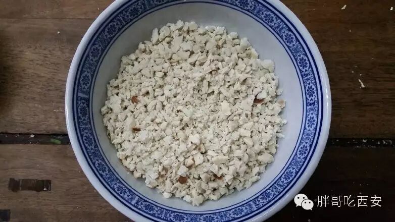 先来掰个馍,馍要掰成黄豆大小,皮儿馍相连,这样煮出来的馍才能充分的入味。