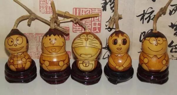 在葫芦上烙画必须要有一定的美术功底,通常的烙画素材都是临摹一些老画、名画等等,对于兴趣爱好者来说很难操作,所以今天小编教大家一个超级简单,成品美观又很有个性的手捻葫芦烙画小挂件——手捻葫芦烙画机器猫。
