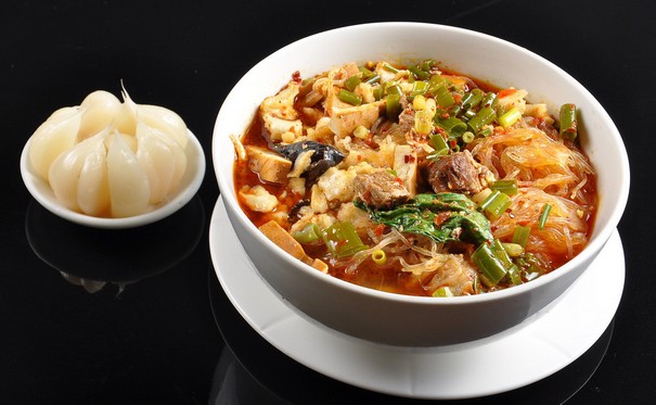 推荐理由:小炒泡馍太丰富,有豆干、有肉、有粉丝……酸酸辣辣,热腾腾的,汤汁喝了都很舒服,记得配上糖蒜一起吃,很爽口。