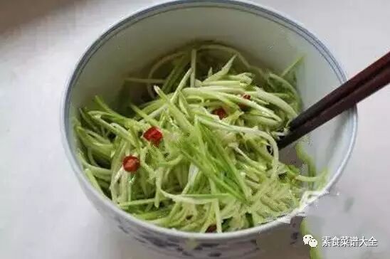 3、这道菜一定要现吃现拌,因为西葫芦丝在加盐后会很快出水,然后打蔫儿,口感不脆卖相也不好了。