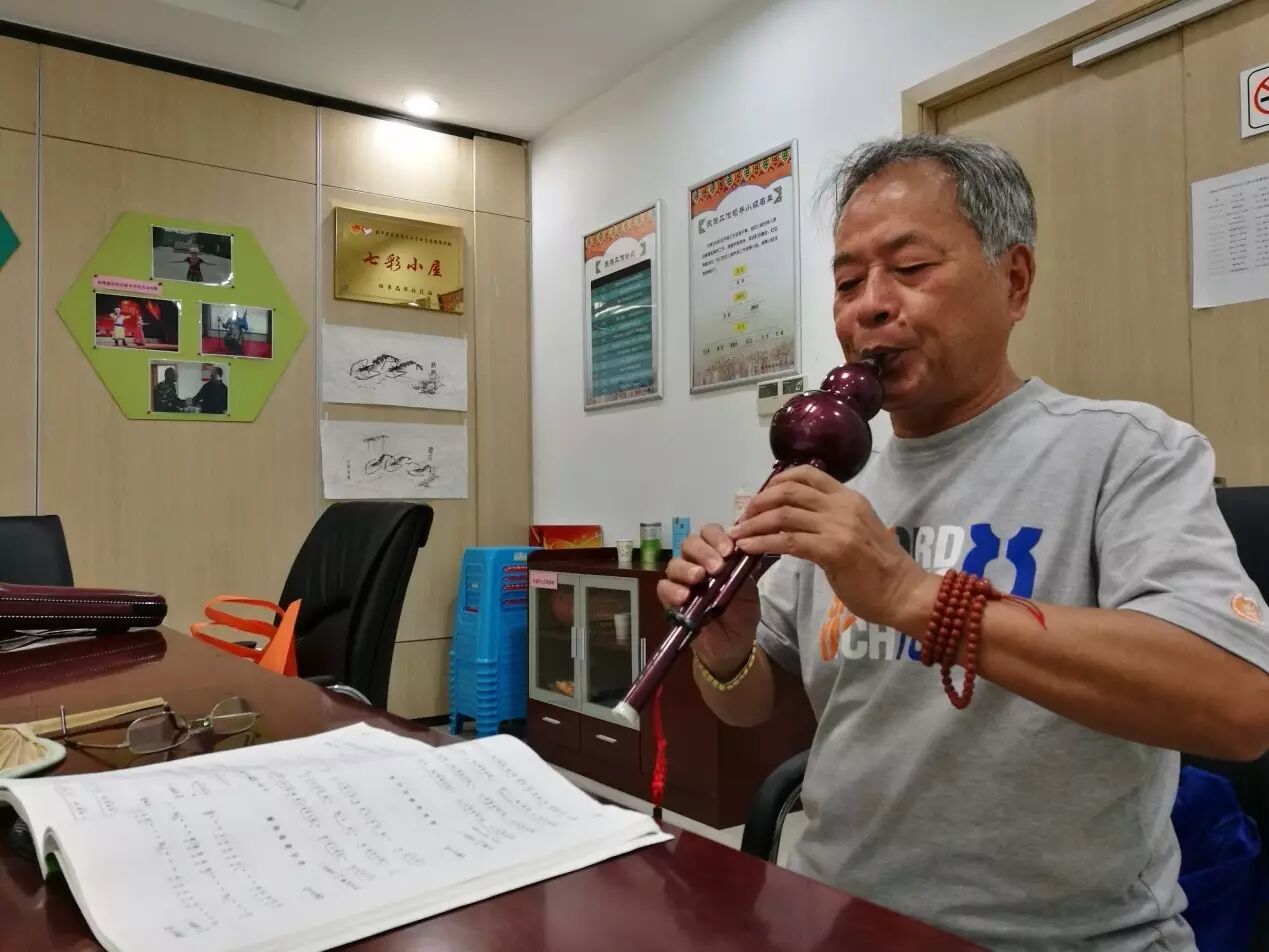 今年69岁的沈惠民师傅是这里年龄最大的学员,也是唯一一个在老年大学曾经学习过的居民。因为与其他课程有冲突,不得不放弃了葫芦丝的学习。在课程结束后他表示:兴趣小组还要继续,我们可以跟着网络视频继续学。