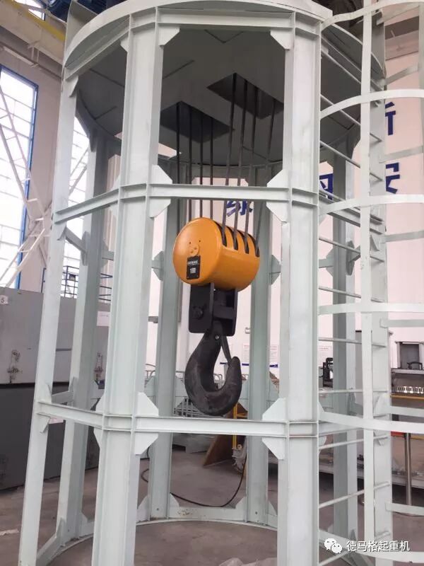 下图是德马格首例应用在国内某知名特种船舶设计研究所的100T钢丝绳葫芦,此次客户除了要求起升精确,同时对安装空间和尺寸也有很高的要求。德马格DH系列的钢丝绳葫芦结构简单,直线型结构完美解决了现场空间狭小的问题。