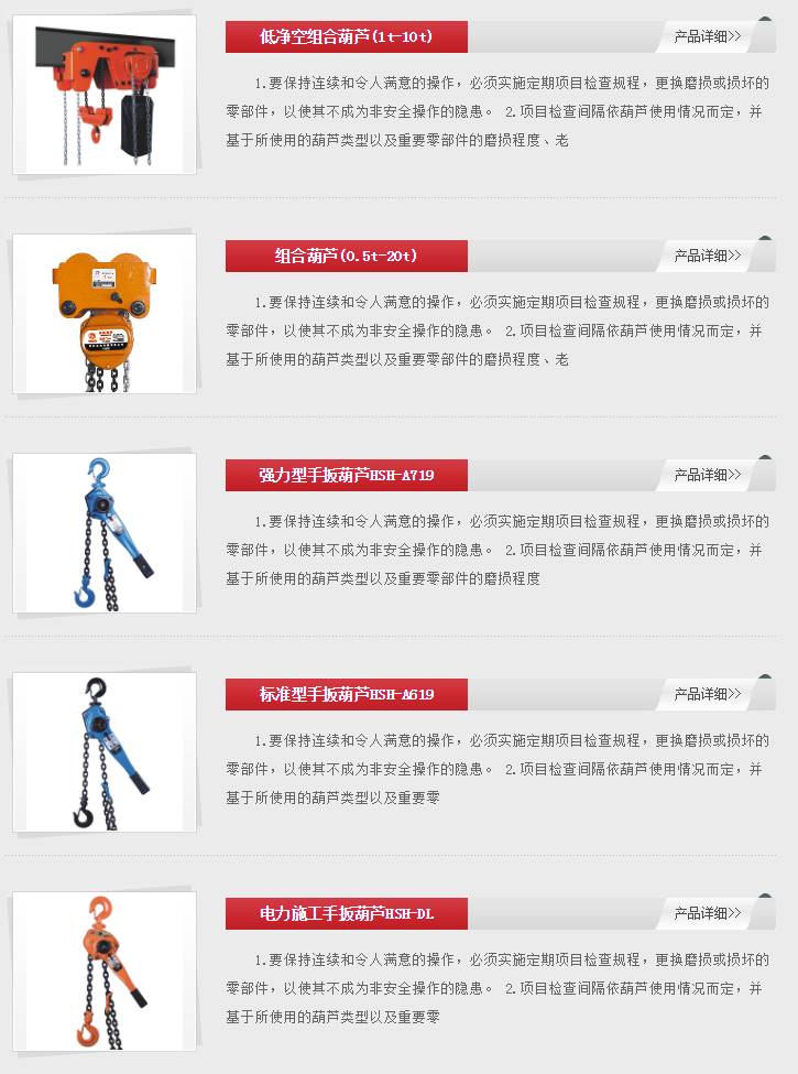 公司通过ISO9001质量管理体系、ISO14001环境管理体系、OHSAS职业健康安全管理体系认证以及德国GS、欧洲CE认证,率先通过欧盟2005/84/EC指令,REACH法规要求。手拉葫芦获得全国工业产品生产许可证,环链、钢丝绳电动葫芦获得国家特种设备制造、安装、改造维修许可证。