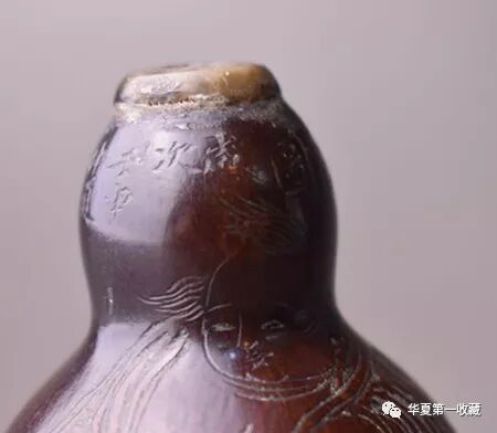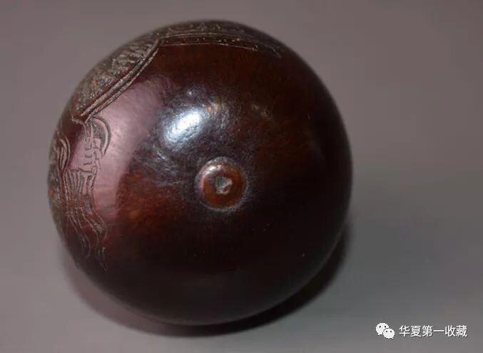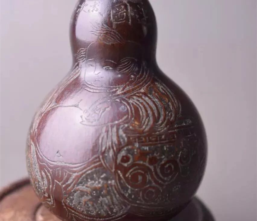 采用的是圆球状的小型葫芦,所刻图案格局性强,细微精致。
