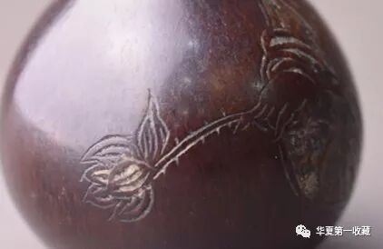 葫芦工艺品的制作手法很多,主要有刀刻、针刻、绳扎、范制、火画和押花等。此件匏器为刀刻、针刻工艺。