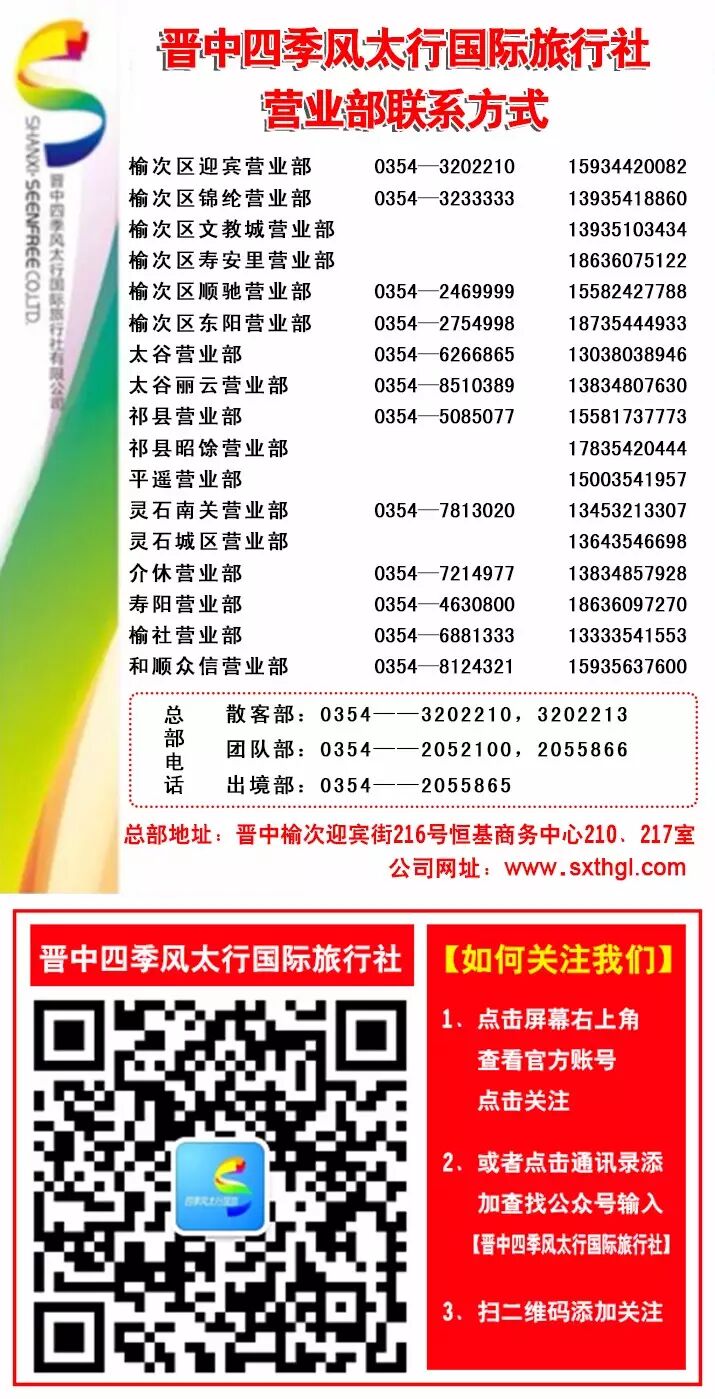 太谷/祁县/平遥/介休/灵石高速口上车,全程无任何强制消费。