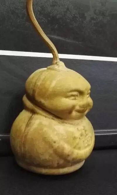 今天小水滴带你看到下图的这个“弥勒佛像”,是一种葫芦新品种。通过外罩弥勒佛像模具,经过几个月的自然生长而生成这般模样的。