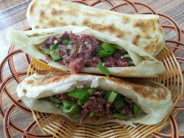 饼里面加了麻椒和肉馅的料,鸡蛋和火腿夹进去以后再撒一些麻椒粉,再放上老板的独门辣椒。保证你吃一个不够!不信你就去尝尝!