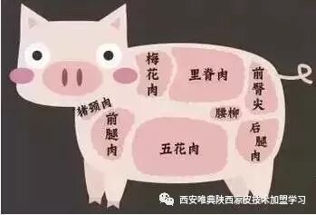 3.坐臀肉:位于后腿上方,臀尖肉的下方臀部,全为瘦肉,但肉质较老,纤维较长,一般多作为白切肉或回锅肉用。