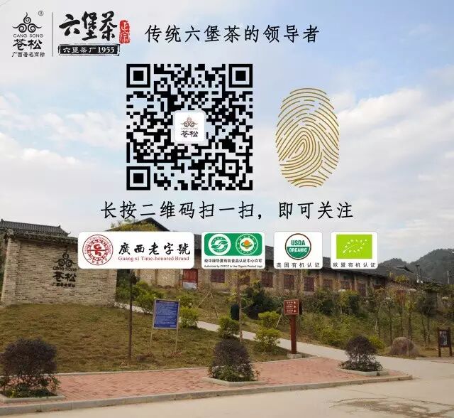 “苍松”一直致力为消费者提供传统、天然、生态、无污染的六堡茶。 拥有六堡最老的茶厂,最老的茶园,最传统的工艺和陈化仓库。 有六堡茶唯一的原种种质保护基地,唯一的六堡原种无性育苗基地,每年提供500万株六堡原种茶苗。我们在六堡不仅有2000多亩的自有茶园,更是以有机生态的制茶理念,生产最高品质和最高安全标准的六堡茶。 “苍松”是广西老字号和广西著名商标,是六堡镇的名片,还是广西农业产业核心示范区。