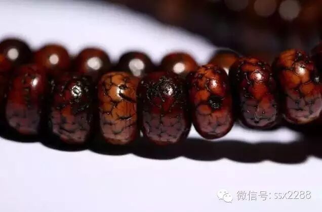 由于长时间的把玩,念珠之间会相互摩擦,造成自然磨损,用手触摸时可以感到珠体边缘十分润滑。但现代的工艺,是很难能够模仿出来的。