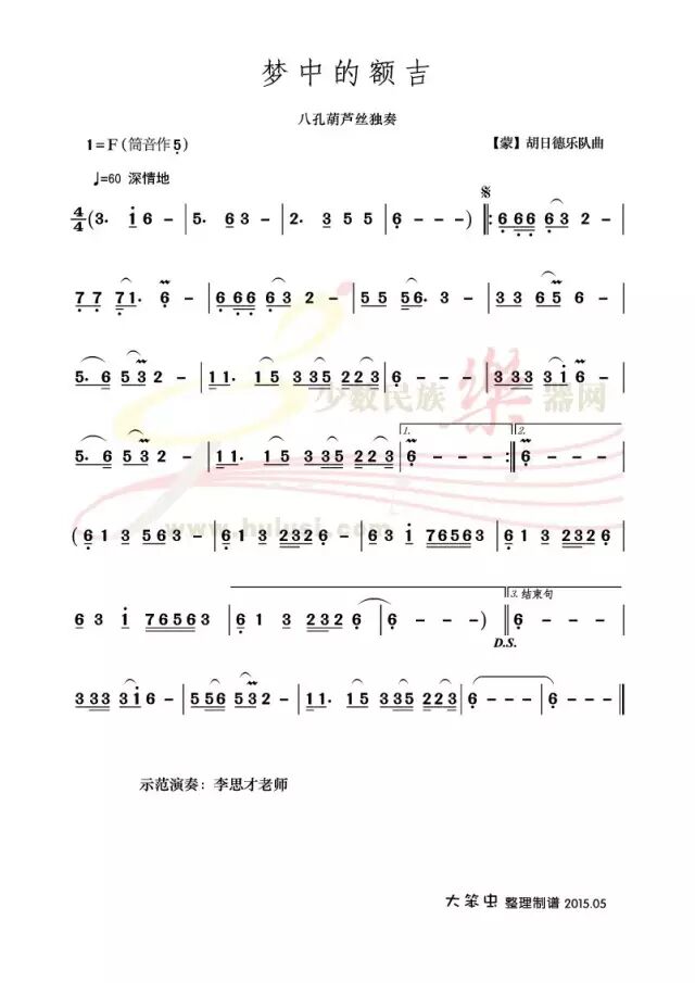 此曲由李思才老师用F调八孔葫芦丝移植演奏,吹的非常好听!
