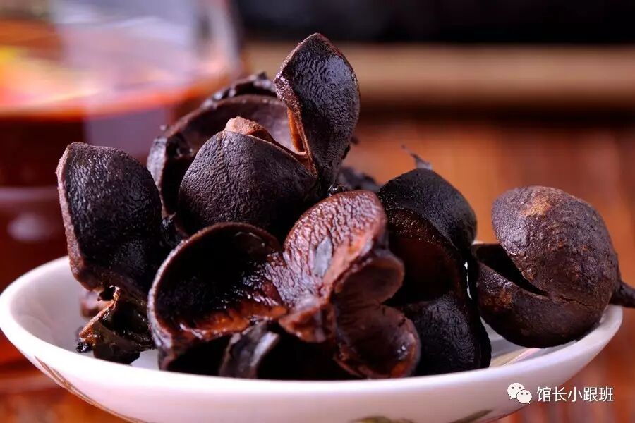 茶果壳,即是将六堡茶树上生长的茶果采摘晒干,取其壳保存起来,待到一定年份饮用。