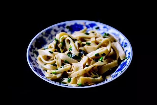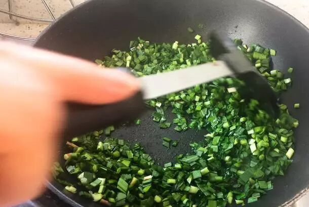 韭菜切碎,只用油炒炒,拌凉皮味道也是很好的。