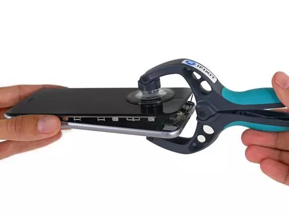 和 iPhone 6s 一样,它依然有一条胶水带,沿着显示装置,幸好他们有自己专业的神器进行拆解。