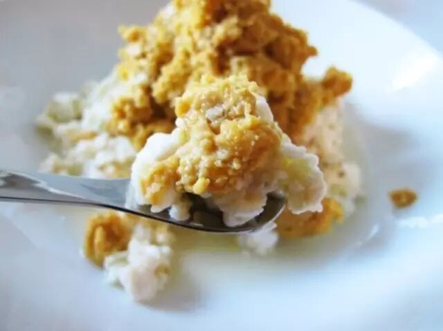 1、腐乳捣烂,加鸡蛋、油(1个鸡蛋配半汤匙油)、葱花、香菜末打匀待用。