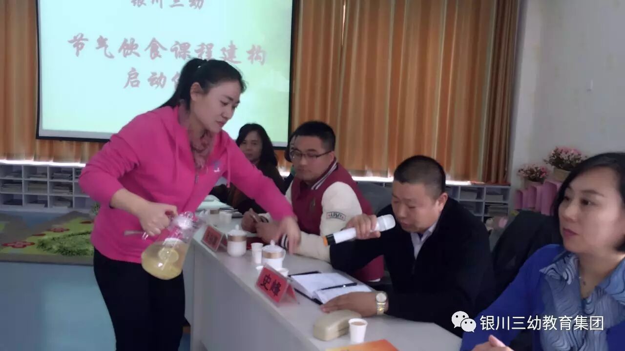 会议流程首先由园长牛学玲从银川三幼建构节气饮食课程体系的背景及意义向大家介绍了构建饮食课程的最初由来和想法。牛园长恳切的指出:幼儿园在提升保教质量的同时,应面向幼儿家长提供科学育儿指导,它不仅是教育方面,更应针对3-6岁儿童的全面发展来进行,科学饮食教育也尤为重要。从四方面提出了幼儿节气课程的的初步由来。从中国人的健康现状,到幼儿家庭的饮食现状谈到我园对幼儿饮食管理的认识和做法,创新的提出用课题研究的方式、用课程建设的思路创新幼儿膳食管理。中医儿科张主任在前期的约谈中,对我园的想法和做法大力称赞,启动仪式上我园给张主任颁发了聘任证书,为进一步推进完善课程体系提供理论依据和指导。郭园长在启动仪式上宣读了饮食课程小组成员及分工情况。然后由总务主任何峰向大家汇报了题为银川三幼幼儿饮食文化“二十四节气”饮食课程体系的初步构想,运用图文并茂的PPT演示文稿的形式,向大家阐述了银川三幼的伙食多年来在严、细、新、实四个字上下功夫,赢得了家长“三幼伙食好的”社会口碑。多年来,我园一直立志于把中华传统节日渗透进饮食文化之中,创新的提出二十四节气饮食课程体系的构想,我们前期做了大量的准备工作,发动后厨营养师们,翻阅记录了大量资料,并制作了二十四节气养生图包含了节气的特点,节气适宜的养生知识,适宜的蔬菜、肉类、推荐的养生食谱等,结合惊蛰时节的节气特点为孩子们准备了蜂蜜柠檬水、银耳雪梨水、冰糖雪梨水、醪糟蛋花汤,酸酸甜甜的营养水让孩子们在春天里,精神愉悦、精力充沛,成长着,幸福着!