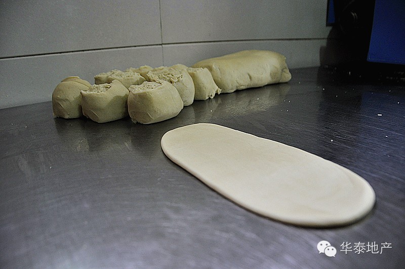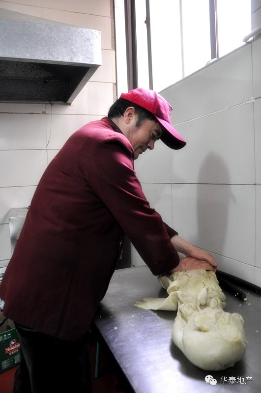 第二步用手揪出大小合适的面团,擀平,薄厚要均匀,力度也要均匀。是见功夫的一步,一般这一步都只交给有多年经验的面食师傅一人完成。