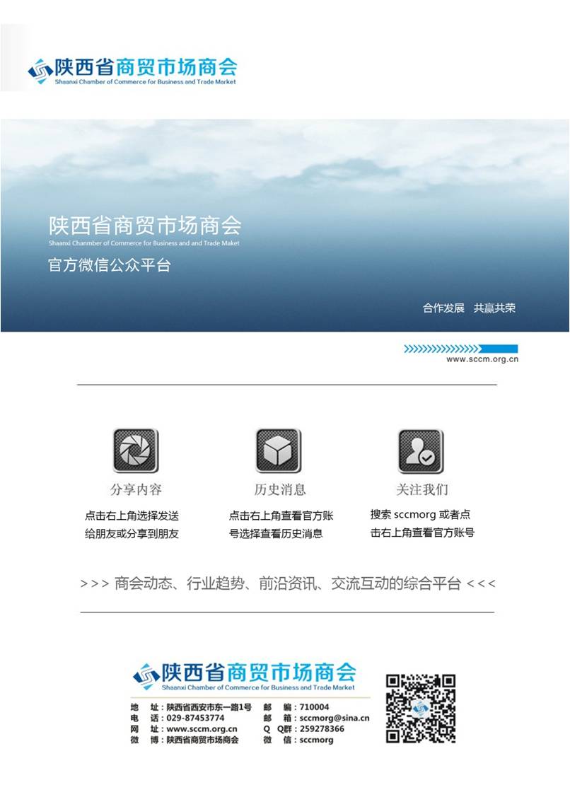 § 陕西省商贸市场商会 成立于2012年9月,是省内不同行业、相同业态的商贸市场类企业发起的直属于省工商业联合会、陕西省民政厅正式备案的民间组织。由陕西丹尼尔企业集团、西安大明宫实业集团、西安赛格集团、陕西平安运输集团、西安鼎天投资控股(集团)等在行业内处于领先地位的民营企业发起成立的。现有陕西源利国际集团、西安方欣集团、邮储银行西安分行、陕西省创业促进会、西安市工商业联合会汽车商会等副会长、理事、会员200余家,均为陕西省商业市场领域内的极具市场影响力的龙头企业