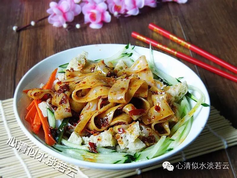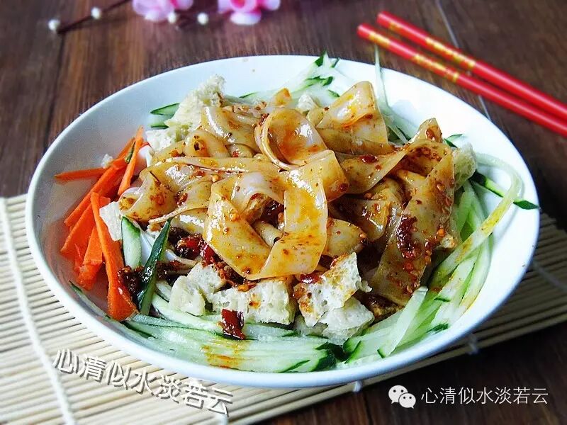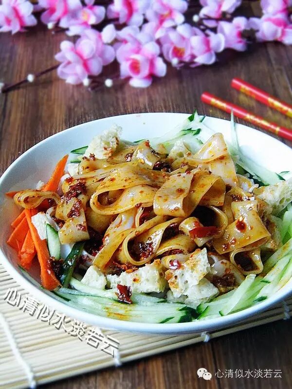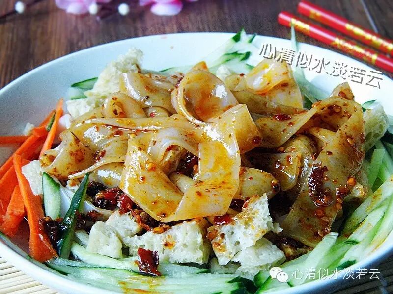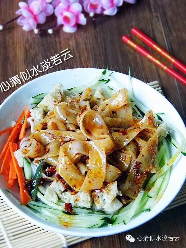 凉皮是一种凉拌着吃、口感绝佳的西北面食小吃。调好的凉皮,皮子白里透亮、面筋因为吸附酱油而泛黄、黄瓜丝现着绿、辣椒油敞着红,好吃又好看。冬天吃凉皮你能保暖,夏天吃能消暑,春天吃你能解乏,秋天吃你能去湿,真可谓是四季皆宜、由于凉皮为大众化小吃,各地对凉皮这个小吃叫法各异,但都是使用淀粉浸泡沉淀后熟化得到的一个淀粉制品,制作原理一样,自己动手做放心凉皮,虽然有点麻烦,但是真的不难哦!