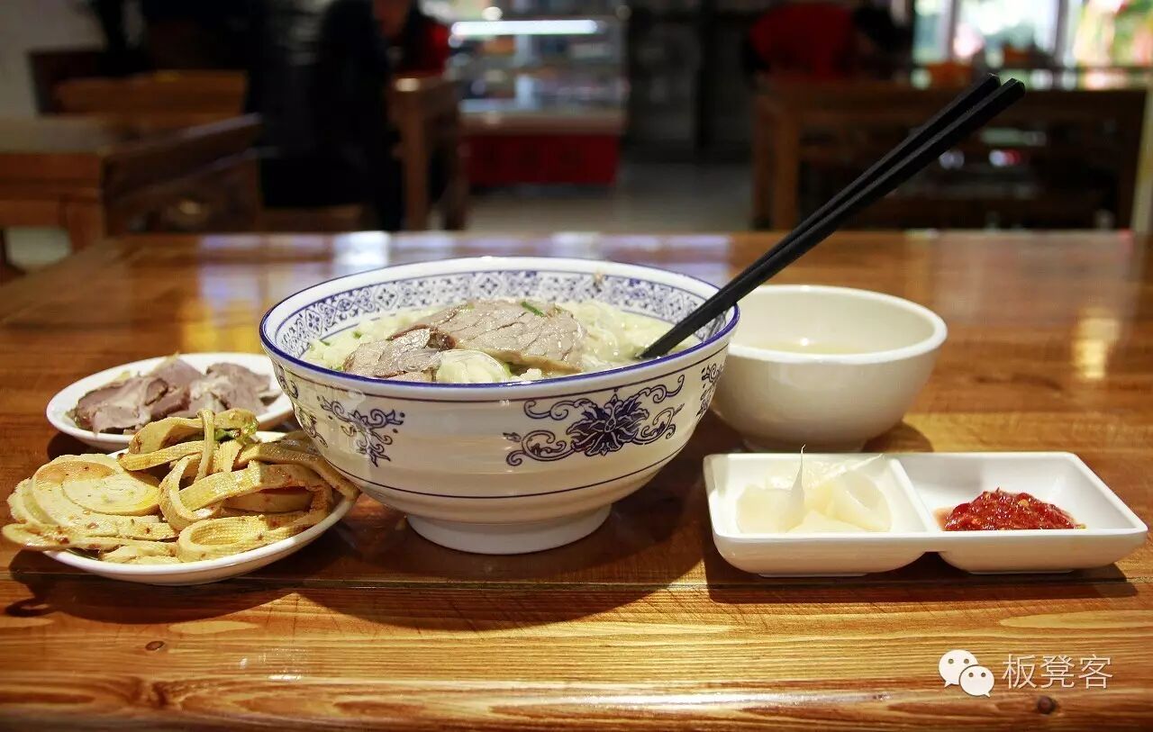 牛羊肉泡馍一份、牛肉拉面一份、自制泡菜一份