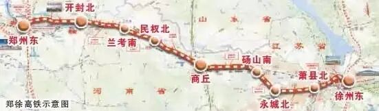 初期计划开行46对高铁,郑州到徐州最快约1小时30分钟就可到达,约362公里,途经河南、安徽、江苏三省。