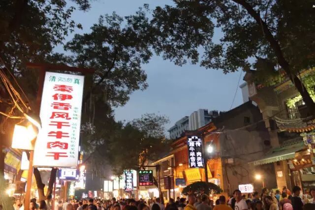 这里也称为“回坊”、“坊上”,在这里你能够吃到几乎所有的西安小吃,包括:各种烤肉串、羊肉泡馍、灌汤包子、麻辣羊蹄、水盆羊肉、酸菜炒米、腊牛羊肉、凉皮、羊肉饼、八宝甜稀饭、糊辣汤、蛋花醪糟等等。