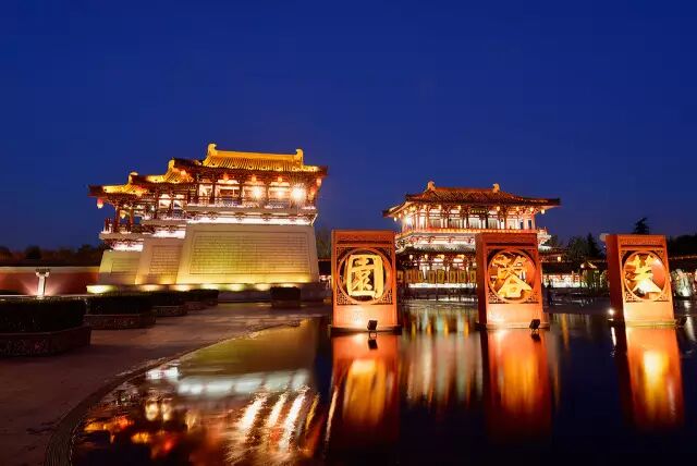 中国第一个全面展示盛唐风貌的大型皇家园林式文化主题公园,古代皇家园林,皇家建筑风格,宏伟大气。漫步在园林中,感受着古代中国园林建筑,夜景和白天的景色又是另一种独特的感觉,灯火辉煌,少了白天的宏伟,多了份雍容华贵。