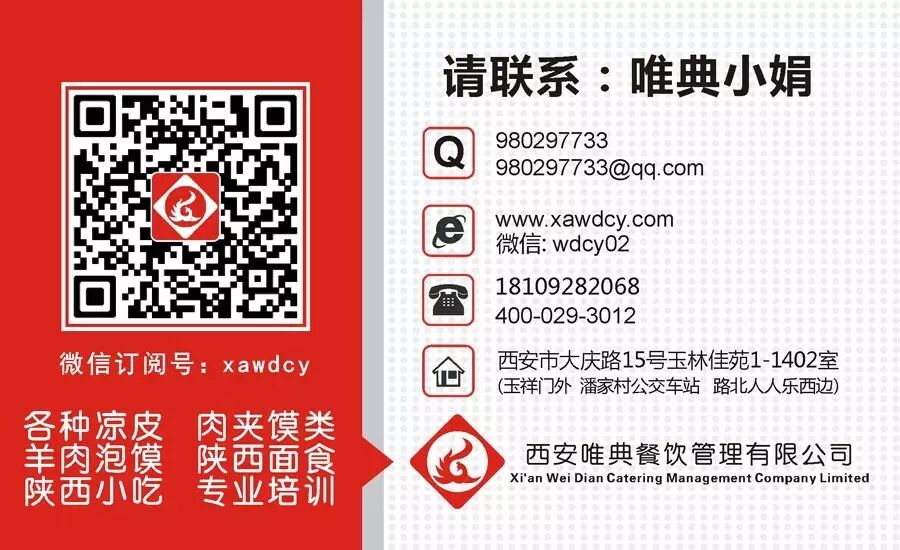 “关中王记”品牌是西安唯典餐饮管理有限公司旗下的第二个陕西小吃品牌,现阶段对来西安唯典参加餐饮技术培训的广大学员免费加盟!