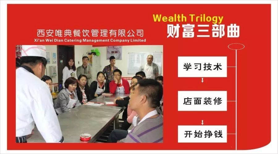 凡在西安唯典参加过学习的学员,还可以免费加盟“关中王记”品牌,目前中国已经有200多家店面,所有店面设计、门头设计、灯箱片设计、展架设计、店面管理等都不收入任何费用,100%免费加盟,让您在最短时间开一家属于自己的店面!