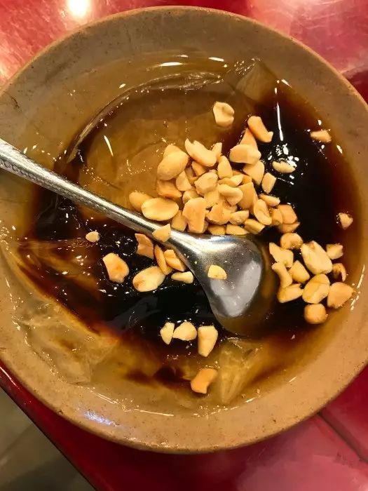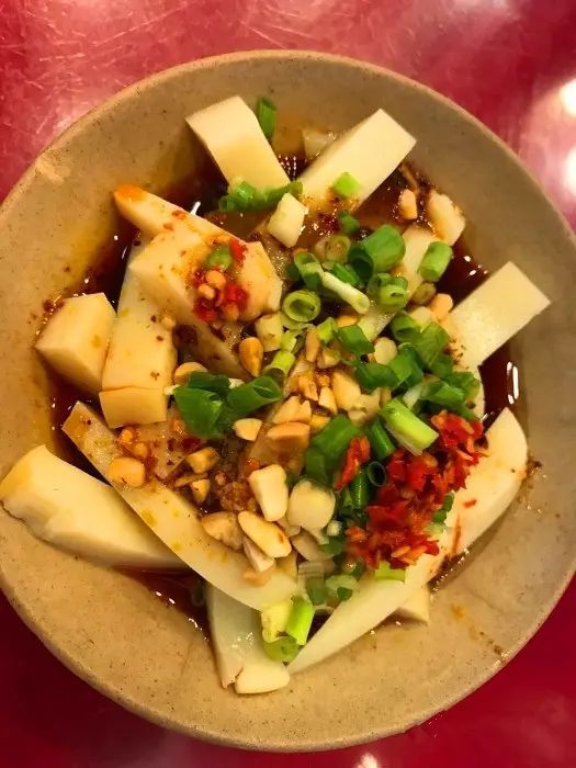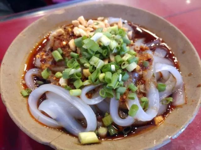 凉粉看起来不辣,但是搅拌过后,越吃越辣,真的眼泪都可以拉出来。