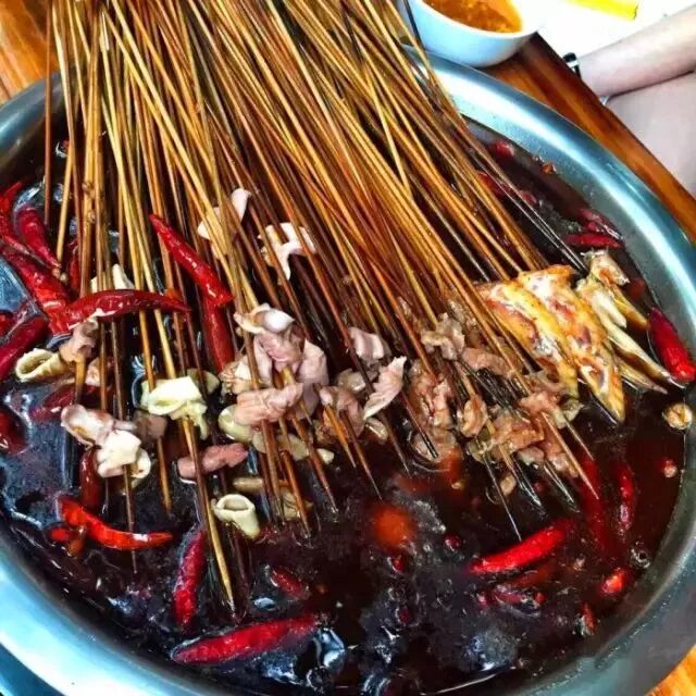 对于串串,最早除了玉林串串,还有一个叫袁记的串串。这么多年来,开了许多家分店,却一直火爆着。当时串串不是太盛行,品种很单一,但是却做到了串串的龙头。牛肉包着香菜,很滑爽。