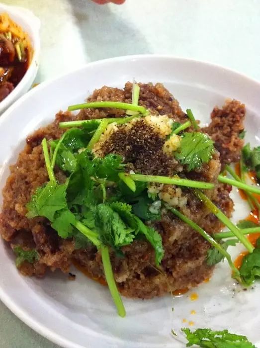 这是一家很多年的老店了,菜都保持当初的那个味道。粉蒸牛肉蒸出来热气腾腾,粉子不会散开,加上香菜的香味,味道很纯正。